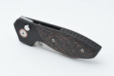 This latest reiteration still checks all those boxes, with an added dash of innovation. This bolstered version of the Mini will come with FatCarbon's exquisite copper infused carbon fiber in his proprietary snakeskin pattern and a brand new auxiliary detent which holds the blade in the closed position even while the button lock is depressed. This not only improves the action, but also reduces the chance of accidental deployment.