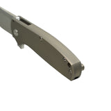 Originally offered as a Semi-Custom, this Full Production version of the UpSide-Down Jasmine framelock flipper features a modified wharncliffe blade measuring at 3.125 inches. All versions feature titanium handles which are either beautifully anodized or stonewashed for a heavy duty user finish.
