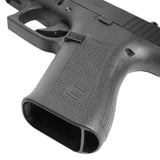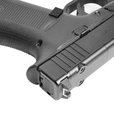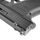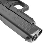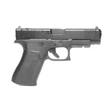 The G48 chambered in caliber 9mm Luger is of similar length and height as the G19 but the width of the pistol is reduced for increased carrying comfort. The reduced overall width of the grip allows users with smaller hands to get a good purchase on the grip for added control. Despite the thin profile of the G48, the standard magazine capacity is a relatively high 10 rounds. It comes with a black colored nDLC coated slide complete with front cocking serrations and MOS cut, cover plate, and accessory rail.