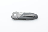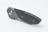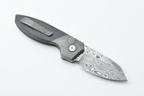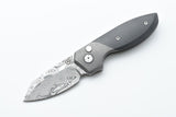 We believe that this latest reiteration still checks all those boxes, with an added dash of innovation. This bolstered version of the Mini is paired with 2 handsomely contoured slabs of blasted Zirconium and a brand new auxiliary detent which holds the blade in the closed position even while the button-lock is depressed. This not only improves the action, but also reduces the chance of accidental deployment. Weighing in at an impressive 155 grams, this knife was not made to be delicate. This variant also features a Damasteel blade with a deep hollow grind.
