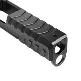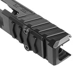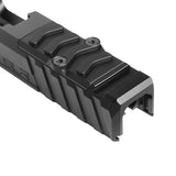 SLR Rifleworks Glock 19 Gen 4 Slide. Custom front, rear, and top serrations, RMR optic cut with threaded posts, tri-top edges and spare set of optic cover top plate screws.