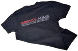 Large "A" logo on the front left and "Agency Arms - Welcome To The Brotherhood" on the back center.
