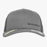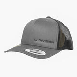 The Q-Division's official Snapback trucker hat, with the Q-Division logo on the lower left side panel. The rear of the hat is a breathable mesh material.